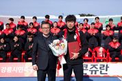[참좋은뉴스= 기자] FC강릉(재단법인 강릉시민축구단)은 2026시즌을 앞두고 직무대행 체제였던 감독직위에 임다한 감독을 임명하여, 새 시즌을 향한 팀 운영 체제를 완성했다. 구단은 2026년 1월 30일, 임다한 감독 임명식을 개최했다. 이날 FC강릉 이사장인 김홍규 강릉시장이 직접 임명장을 수여하며, 감독 직무대행 체제로 운영되던 팀이 정식 감독 체제로 전환했음을 대외적으로 분명히 했다. 임다한 감독의 선임을 계기로 FC강릉은 2026시즌을 향한 지휘 체계를 명확히 정립하고, 전지훈련을 포함한 시즌 준비에 속도감 있게 돌입할 계획이다. 임명식 직후에는 2026시즌을 대비해 구성이 완료된 선수단(40명: 코치8, 선수단32)의 첫 공식 행사로 단체사진 촬영이 이어졌다. 이번 행사는 완성된 선수단의 현재 모습을 대중에게 처음 선보이는 자리로, 2026시즌 FC강릉의 출발을 상징하는 장면이 될 전망이다. 또한 김홍규 이사장은 전지훈련을 앞둔 선수단에게 격려와 응원의 메시지를 전하며 선전을 당부했고, 선수단 역시 새 시즌을 향한 각오와 결의를 다지는 시간을 가졌다. FC강릉 최윤순 단장은