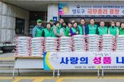 [참좋은뉴스= 기자] 부산광역시 영도구 새마을회(회장 김철호)는 연말연시를 맞아 지역 내 소외되고 도움이 필요한 이웃들에게 따뜻한 격려와 온정을 전하고자, 지난 12월 16일 영도구청 광장에서 ‘따뜻한 겨울나기 사랑의 성품 나누기 행사’를 개최했다. 이번 행사는 경제적 어려움으로 힘든 시기를 보내고 있는 이웃들에게 희망과 용기를 전하고, 나눔과 배려를 실천하는 공동체 문화를 확산하기 위해 마련됐다. 특히 지역사회와 늘 함께하는 새마을지도자들의 역할을 되새기며, 이웃 돌봄과 나눔 실천의 가치를 공유하는 뜻깊은 자리로 의미를 더했다. 이날 행사에는 영도구청장을 비롯해 구지회장단, 각 동 부녀회장과 새마을지도자 등 40여 명이 참석했으며, 독거 어르신, 장애인 가정, 차상위계층 등 관내 취약계층 100세대에 장흥쌀(10kg)을 전달했다. 김철호 영도구 새마을회장은 “경기침체 등으로 모두가 어려운 시기일수록 주변의 소외된 이웃들에게 더 많은 관심과 따뜻한 손길이 필요하다”며 “오늘 전달한 장흥쌀이 이웃들의 겨울나기에 작은 힘이 되기를 바란다”고 말했다. [뉴스출처 : 부산시 영도구]