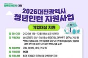[참좋은뉴스= 기자] 대전시는 2026년 청년인턴 지원사업에 참여할 구인 기업과 구직 청년 80명을 27일부터 공개 모집한다. 청년인턴 지원사업은 지역 내 일반 미취업 청년에게 산업현장 인턴 근무를 통한 일․경험 기회를 제공하고, 정규직 전환을 유도하는 등 지역 청년의 경력개발을 지원하며, 지역 기업의 원활한 인력수급을 돕기 위한 사업이다. 참여 대상은 대전 소재 상시근로자 5인 이상 중소․중견기업, 대덕특구 연구소 기업과, 대전 거주 만 18세 이상 만 39세 이하 미취업 청년이면 가능하다. 이 사업을 통해 구직 청년은 3개월간 지역 산업현장에 인턴으로 근무하며 일․경험 기회를 제공받으며, 기업은 월 200만 원의 인건비를 지원받아 2026년 최저임금 차액분 이상의 인건비를 기업이 부담하여 인턴에게 지급하게 된다. 참여를 원하는 인턴은 신청일 기준 미취업 상태의 청년이며, 기업은 대전시 지원금을 포함 최저임금 준수 및 4대 보험가입은 필수이고 정부 등으로부터 별도 지원금을 받지 않아야 한다. 신청 및 공고문 확인은 대전일자리정보망(을 통해 가능하며, 기타 궁금한 사항은 대전일자리지원