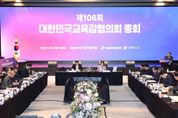 [참좋은뉴스= 기자] 대한민국교육감협의회(회장 강은희 대구광역시교육감)는 1월 29일, 경기도 성남시 더블트리바이힐튼서울판교호텔에서 제106회 총회를 개최했다. 이번 총회에서는 전국 시도교육감 및 교육청 관계자, 협의회 사무국 관계자 약 200명이 참석하여 '사립학교의 ‘공직자 이해충돌방지법’ 적용을 위한 법령 개정 건의' 등 5개 안건을 심의·의결했고, '행정통합 추진에 따른 경과 및 쟁점'에 대해 교육의제로 토의했다. 이날 심의 안건은 ▲사립학교의 ‘공직자 이해충돌방지법’ 적용을 위한 법령 개정 건의, ▲외부강의 등 요청 표준서식 마련 요구, ▲‘보호자 협조·동의 관련’ 기초학력 보장법 및 동법 시행령 개정 요청, ▲교육활동 침해 학생의 학적변동 제한을 위한 법률 개정 건의, ▲학습지원 소프트웨어 관련 초·중등교육법 개정 제안으로 모두 5개의 안건을 심의·의결했고, 지난해 12월 11일 실무협의회를 통해 전국 17개 시도교육청의 전원 합의 과정을 거쳤다. 다음으로 2개 교육청에서 우수사례를 발표했는데, ▲(경기) 시·공간 경계를 넘어 세계를 잇는 한국어교육 온라인 경기한국어랭귀지스쿨(KLS 3섹터) 구축,