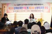 [참좋은뉴스= 강희숙 기자] (사)한국문인협회안산지부(이하 안산문협)는 지난 7일(토) 안산문협 사무실에서 내빈과 회원 70여 명이 모인 가운데 제23대 김미희 회장 이임 및 제24대 신현미 회장 취임식을 가졌다. 신현미 신임 회장은 건강상 불참한 김미희 전임 회장을 대신한 강미애 전임 수석부회장으로부터 추대패와 함께 문협기를 전달받았으며, 신임 회장 역시 이임 회장에게 감사패를 전달했다. 강미애 전임 수석부회장은 “지난 2년간 문협과 회원님들을 위해 나름대로 최선을 다하였으나 돌아보니 미흡했거나 소홀했던 부분만 떠올라 감사함과 송구함을 가진다”라며 “앞으로 2년간 신현미 신임 회장과 집행부가 문협을 잘 이끌어갈 수 있도록 전임자로서 도울 일이 있으면 열심히 돕겠다”는 김미희 전임 회장의 이임사를 대독했다. 신현미 신임 회장은 취임사를 통해 “만나는 분마다 그 힘든 문협 회장직을 왜 또 맡았냐는 염려의 말을 축하 말보다 더 많이 들었으나, 그만큼 내외에서 인정하는 힘든 문협 회장의 일을 맡겨주시고 맡은 만큼, 최선을 다해 안산문협의 발전과 문협 회원의 권익을 위해 앞으로 2년을 보내겠다”라고 말해 큰 박수를 받았다. 또한 “회장 2회차이니만큼 기대하는 바들이