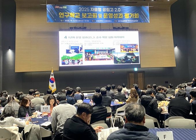 [참좋은뉴스= 기자] 경기도교육청이 3일 ‘2025 자율형 공립고 2.0 연구학교 보고회 및 운영성과 평가회’를 개최했다. 지역과 함께 만들어가는 자율형 공립고 2.0 연구 및 운영 사례 공유로 공교육의 경쟁력을 제고하고자 마련한 자리다.