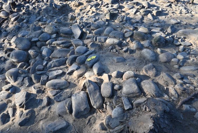 현재까지 조사 결과, 적석분구묘는 해안사구 해발 7m에 조성한 것으로 평면 모습은 직사각형이다.