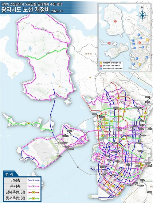 또한 청라·북항 일대에는 도시 확장과 물류 수요 증가에 대응하기 위해 79·80호선 2개 노선이 지정됐고, 서창2지구의 공용 중인 도로인 서창남로·서창방산로, 서창순환로 등 2개 노선(88·89호선)도 신규로 광역시도에 포함됐다.