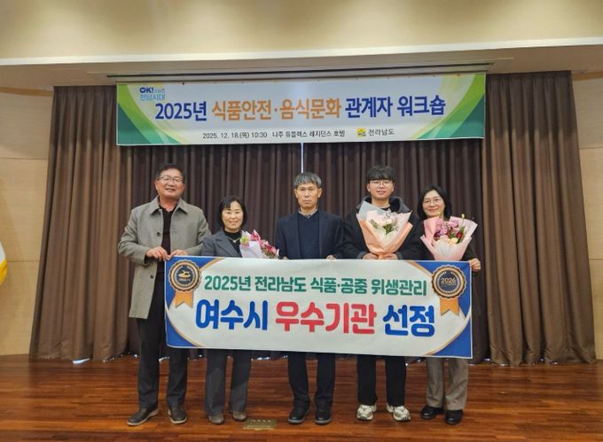 [참좋은뉴스= 기자] 여수시는 전라남도가 주관한 2025년 식품·공중 위생업무 평가에서 우수기관으로 선정됐다고 밝혔다.