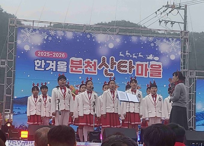 [참좋은뉴스= 기자] 봉화군 소천면 분천산타마을에서 지난 20일(토) 개최된 ‘2025 한겨울 분천산타마을 개장식’ 이 지역주민과 관광객들의 열띤 호응 속에 성황리에 열렸다. 이번 개장 축하공연에는 봉화교육지원청이 운영하는 봉꽃송이 청소년 합창단이 참여하여 한겨울 추위를 녹이는 따뜻한 무대를 선사했다.