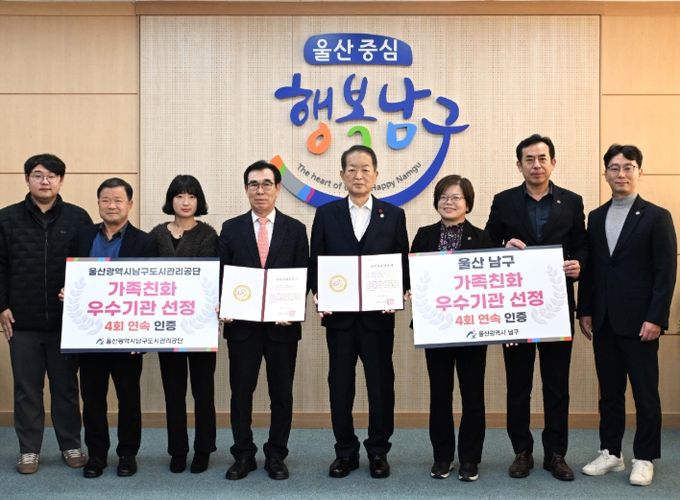 [참좋은뉴스= 기자] 울산 남구는 성평등가족부가 주관하는 ‘2025년 가족친화 인증’ 재인증 기관으로 선정돼 4회 연속 가족친화 인증을 획득했다고 19일 밝혔다.