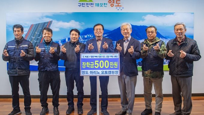 [참좋은뉴스= 기자] 영도 마리노 오토캠핑장(기간제근로자 일동)은 지난 12월 19일 영도구청을 방문하여 우수한 지역인재 양성을 위해 (재)행복영도장학회에 500만 원을 기탁했다.