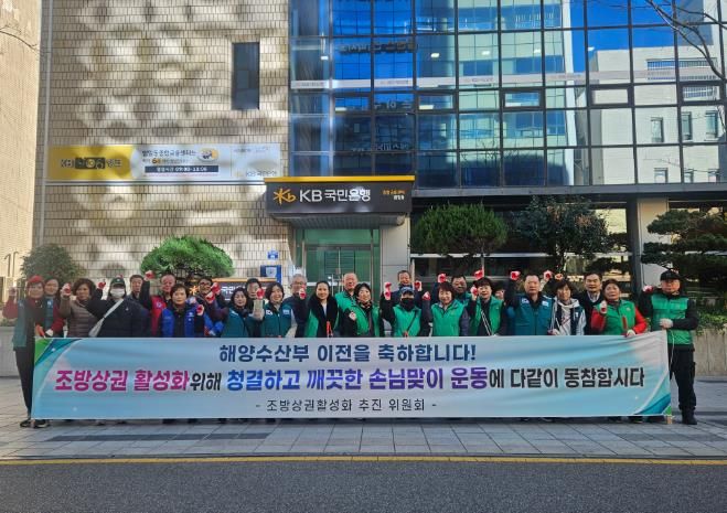 [참좋은뉴스= 기자] 부산 동구 범일2동은 지난 12월 18일 해양수산부 임시청사 개청을 앞두고 조방상권 활성화를 위한 손님맞이 도시환경정비를 실시했다.