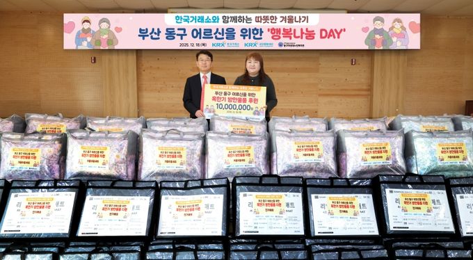 [참좋은뉴스= 기자] 2025년 12월 18일, KRX국민행복재단(이사장 정은보)은 동구지역 어르신들의 따뜻한 겨울나기를 응원하며 동구자성대노인복지관(관장 이은숙)에 후원금 1,000만원을 기탁했다.