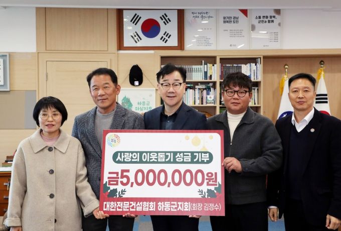 군 관계자는 “연말마다 따뜻한 나눔을 실천해 주신 대한전문건설협회 하동군지회에 감사드린다. 기부금은 투명하게 관리해 꼭 필요한 곳에 소중히 사용하겠다”라고 말했다.