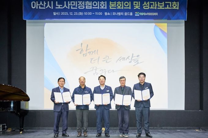 [참좋은뉴스= 기자] 아산시 노사민정협의회(위원장 오세현 시장)는 23일 모나밸리에서 협의회 위원과 기업 관계자 등 100여 명이 참석한 가운데 ‘2025 아산시 노사민정협의회 성과보고회’를 열고, 올해 협력사업 성과를 공유했다.