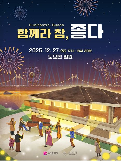 [참좋은뉴스= 기자] 부산시는 오는 12월 27일 오후 4시 30분, 시민을 위한 열린 복합문화공간 도모헌(구 시장관사) 다할 강연장에서 시민 누구나 함께 즐길 수 있는 연말 콘서트 '함께라 참, 좋다 펀!타스틱 부산(Fun!tastic Busan)'을 개최한다고 밝혔다.