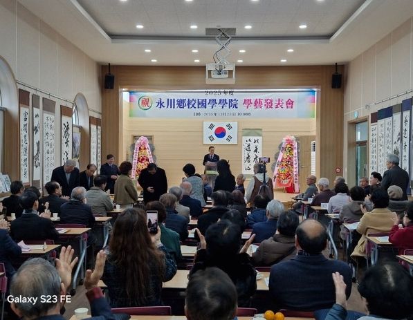 [참좋은뉴스= 기자] 영천향교 국학학원(원장 이덕기)은 지난 23일 본원 3층 대강당에서 관내 단체장과 수강생 등 200여 명이 참석한 가운데 ‘2025년 정기 학예발표회’를 성황리에 개최했다.