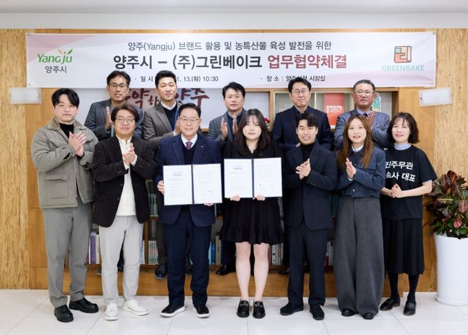 [참좋은뉴스= 기자] 양주시는 13일 오전 ㈜그린베이크와 ‘양주(Yangju) 브랜드 활용 및 농특산물 육성 발전을 위한 업무협약(MOU)’을 체결했다고 밝혔다.