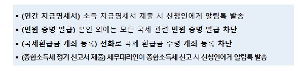 이 밖에도 명의도용으로 인한 피해가 예상되는 국세행정 업무에 대해 다음과 같은 서비스를 시행한다.