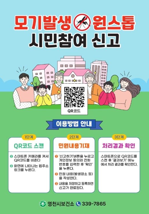 [참좋은뉴스= 기자] 영천시보건소는 QR코드를 활용한 ‘모기발생 원스톱 시민참여 신고’ 시스템을 시범 운영한다고 10일 밝혔다.