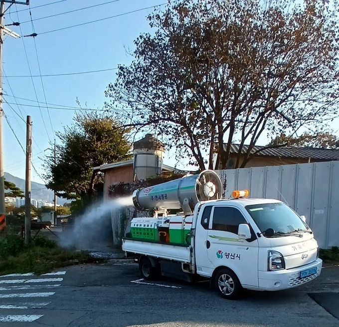 특히 시는 지난 10월 29일부터는 ‘양산시 AI 방역대책본부’를 구성해 AI 방역에 총력 대응하고 있으며, 11월 7일 ‘고병원성 AI 위험주의보’ 발령 및 전국 일제 집중 소독주간 운영에 따라 8일부터 21일까지 2주간 밀집단지 등 취약지역을 중심으로 소독을 강화하고 있다.