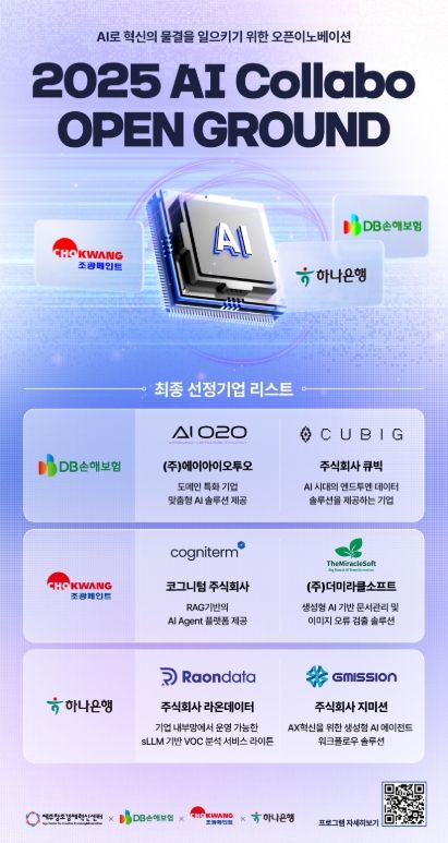 [참좋은뉴스= 기자] 제주창조경제혁신센터(대표이사 이병선, 이하 제주센터)는 DB손해보험, 조광페인트, 하나은행과 함께 추진하는 특화산업 오픈이노베이션 ‘2025 AI 콜라보 오픈그라운드 프로그램’을 통해 최종 6개 스타트업을 선정하고, 기술 테스트와 솔루션 개발을 통해 실질적인 사업화 협력에 나선다.