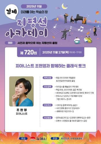 [참좋은뉴스= 기자] 다양한 분야의 명사를 초청해 시민의 문화적 소양의 높이고 삶의 품격을 더하는 교양 강좌인 김제지평선아카데미가 오는 27일 제720회 강좌에 조현영 아트앤소울 예술강의기획 대표를 초청해 “피아니스트 조현영과 함께하는 클래식 토크”라는 주제로 강연을 진행한다.