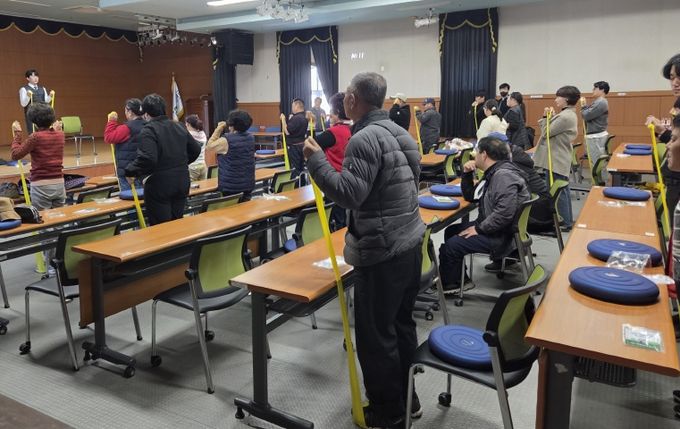 세한대학교와 연계, 전문강사가 어르신과 장애인이 있는 현장을 찾아가 ▲낙상 위험요인 이해 ▲낙상 발생 시 대처요령 ▲노인성 질환 예방 생활관리 ▲운동용품 활용 균형·근력운동 실습 등을 내용으로 교육은 진행됐다.