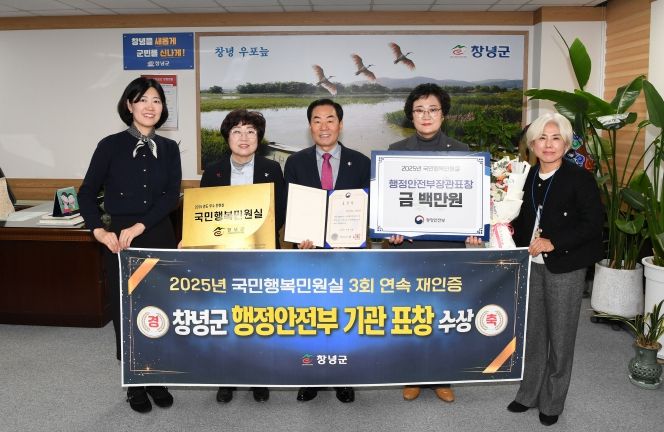 [참좋은뉴스= 기자] 창녕군은 정부세종청사에서 열린 ‘2025년 민원행정발전 유공 시상식’에서 국민행복민원실 인증 분야 행정안전부 장관 기관 표창을 수상했다.