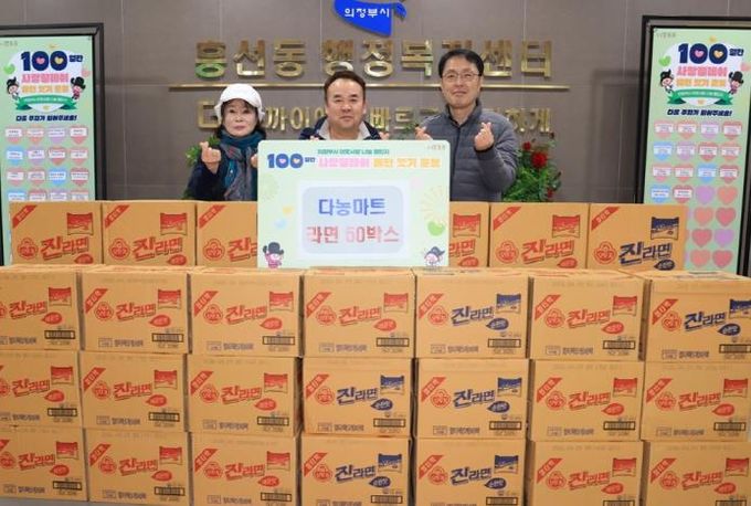[참좋은뉴스= 기자] 의정부시 흥선동행정복지센터는 12월 24일 다농마트가 ‘100일간 사랑릴레이 배턴 잇기’에 동참해 라면 50상자를 기탁했다고 밝혔다.