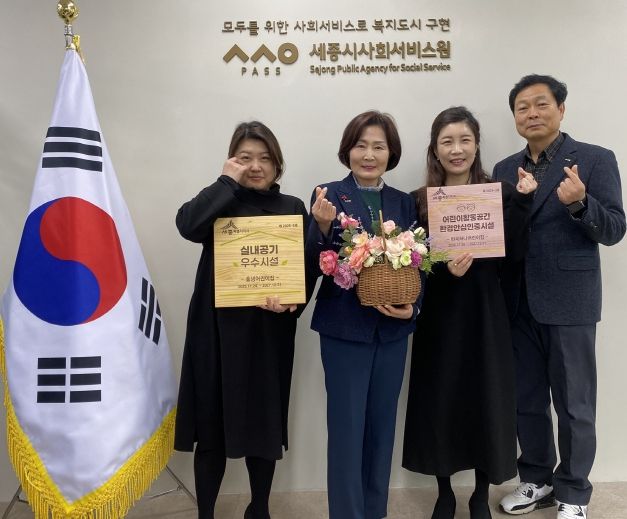 [참좋은뉴스= 기자] 세종시사회서비스원(원장 김명희)이 운영하는 충녕어린이집과 반곡하나어린이집이 세종특별자치시로부터 지난 19일 ‘2025년 실내 공기질·어린이활동공간 우수시설’로 지정됐다.