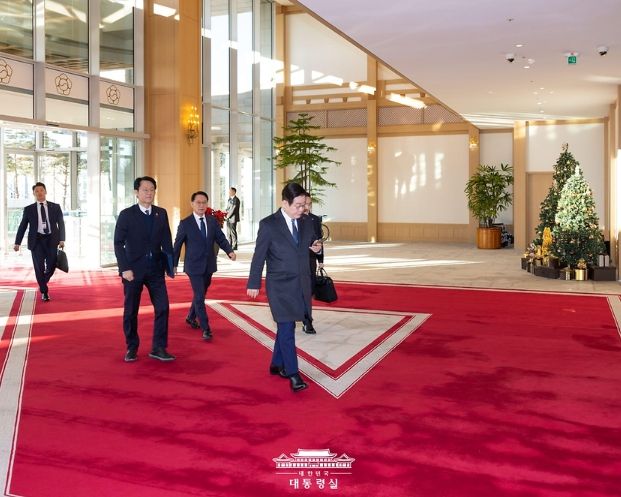[참좋은뉴스= 기자] 이재명 대통령이 26일 청와대 복귀를 앞두고 용산 대통령실로 마지막 출근을 하고 있다.