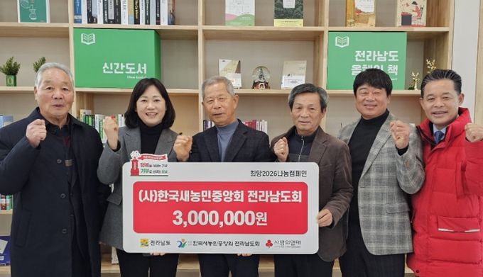 [참좋은뉴스= 기자] 전라남도는 7일 (사)한국새농민중앙회 전남도회가 연말연시 이웃사랑 실천을 위한 ‘희망2026 나눔캠페인’에 성금 300만 원을 전달했다고 밝혔다.