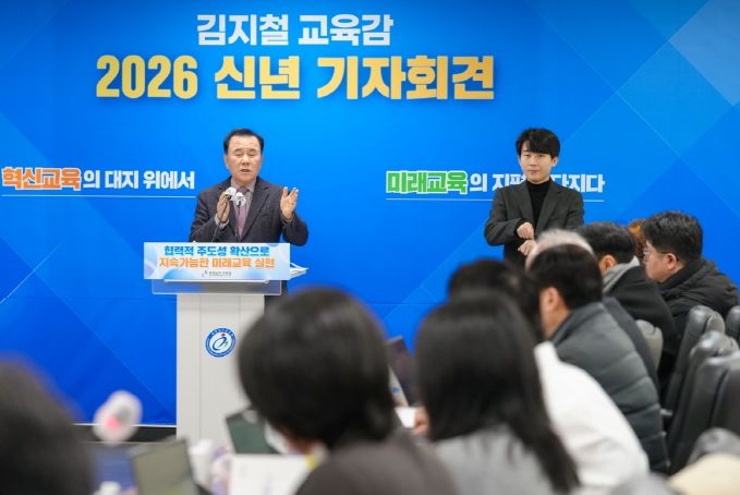 [참좋은뉴스= 기자] 김지철 충남교육감은 8일, 도교육청 회의실에서 ‘2026 신년 기자회견’을 열고, ‘2025년 주요 성과와 2026년 12대 중점 추진 과제’를 발표했다.