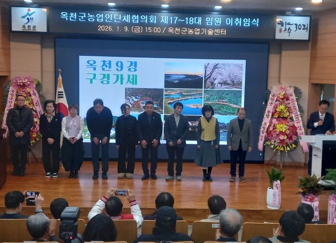 [참좋은뉴스= 기자] 옥천군농업인단체협의회(회장 황동연)가 지난 9일 농업기술센터 농업인교육관에서 회원 및 내빈 100여명이 참여한 가운데 제17‧18대 회장 이‧취임식을 개최했다.