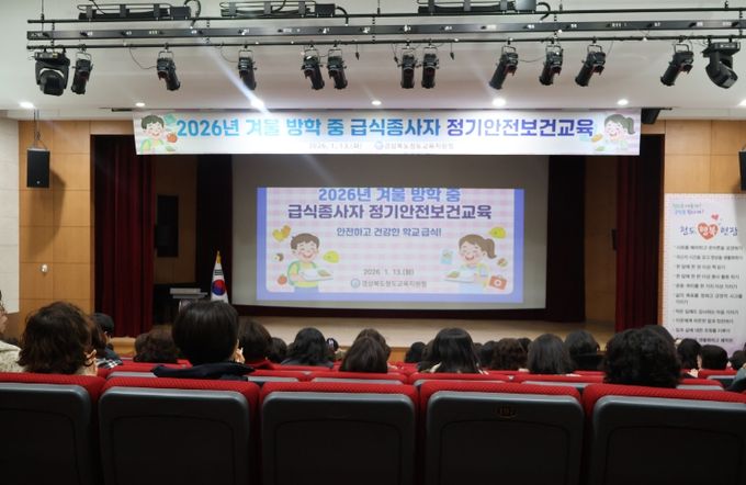 [참좋은뉴스= 기자] 경상북도청도교육지원청은 1. 13. 청도군 청소년수련관 다목적홀에서 청도·영천 지역 학교 급식종사자 130여 명을 대상으로 방학 중 정기안전보건교육을 실시했다.