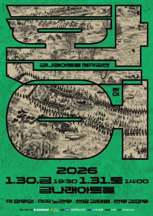 공연은 30일 오후 7시 30분과, 31일 오후 2시에 선보인다. 관람료는 전 석 2만 원이며, 금천문화재단 누리집 또는 놀(NOL) 티켓에서 예매할 수 있다.