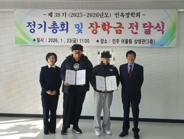 이날 전달식에서는 학업에 성실히 임하고 있는 고등학교 재학생 및 진학 예정자 2명에게 각 50만 원씩 총 100만 원의 장학금이 전달됐으며, 참석자들은 학생들의 새로운 출발을 응원하며 격려의 말을 전했다.