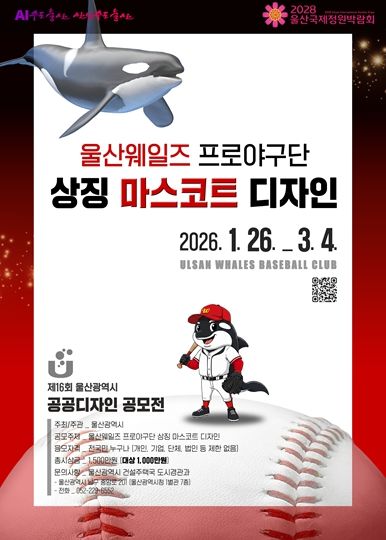 [참좋은뉴스= 기자] 울산시는‘울산웨일즈 프로야구단 상징 마스코트 디자인’을 공모 주제로‘제16회 울산광역시 공공디자인 공모전’을 개최한다고 밝혔다.