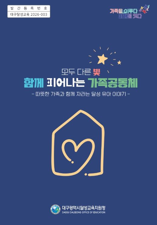 [참좋은뉴스= 기자] 대구달성교육지원청은 유아가 처음 소속되는 공동체인 가족의 의미를 다룬 장학자료 '모두 다른 빛, 함께 피어나는 가족공동체'를 제작해 26일부터 45개 유치원에 보급한다고 밝혔다.
