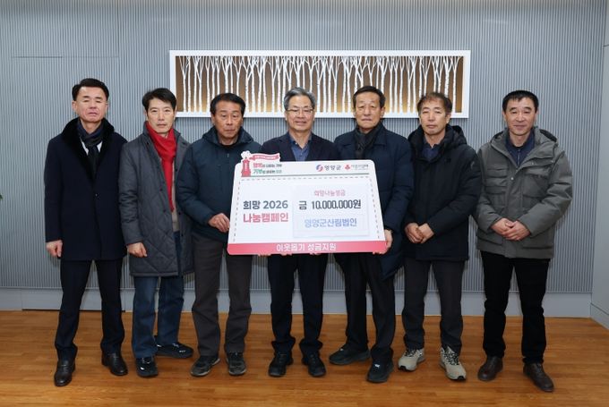 [참좋은뉴스= 기자] 영양군 관내 산림사업 법인 6개사가 1월 26일 영양군청을 합동 방문해, 어려운 이웃을 위한 '희망2026나눔캠페인' 성금 1,000만원을 전달하며 지역사회에 훈훈한 감동을 전했다.