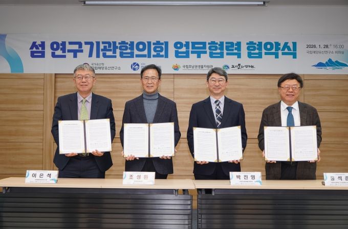 [참좋은뉴스= 기자] 기후에너지환경부 산하 국립호남권생물자원관(관장 박진영)은 국립해양유산연구소, 한국섬진흥원, 국립목포대학교 도서문화연구원과 함께 2026년 1월 28일 국립해양유산연구소(전남 목포시 소재)에서 '섬 연구기관 협의회' 출범을 위한 업무협약을 체결했다.