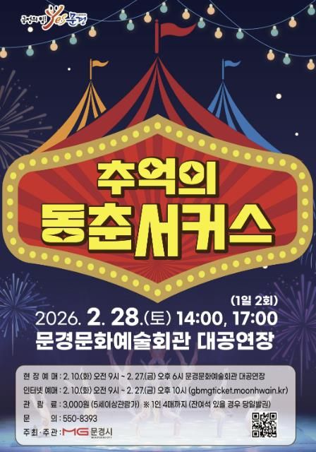[참좋은뉴스= 기자] 문경문화예술회관에서는 가족 연인 직장 동료들과 함께 재미있게 볼 수 있는 추억의 동춘서커스 공연을 2월 28일(토) 14:00, 17:00 (1일2회)에 문경문화예술회관 대공연장에서 개최한다.