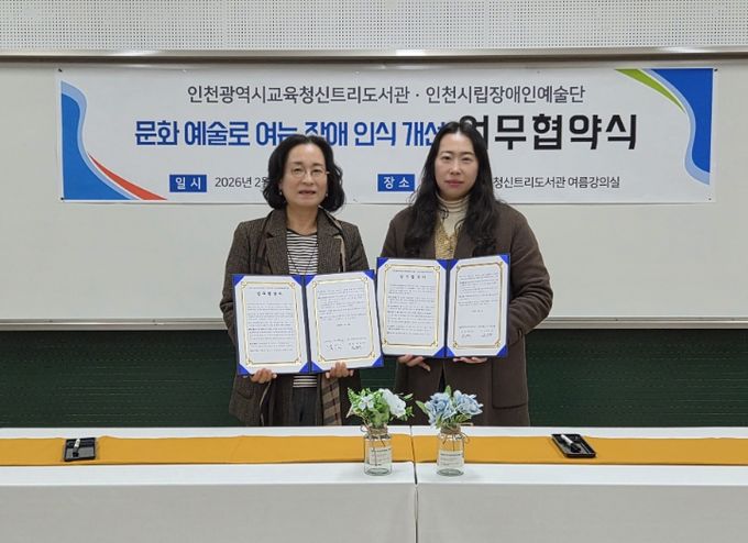 [참좋은뉴스= 기자] 인천광역시교육청신트리도서관은 6일 인천시립장애인예술단과 ‘문화예술을 통한 장애 인식 개선 및 포용적 문화 확산을 위한 업무협약’을 체결했다.