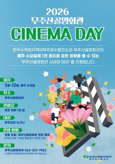 무주군에 따르면 ‘시네마 데이’는 지난 2025년 3월부터 매월 셋째 주 수요일에 운영돼 총 41회, 587명이 관람했다. 올해는 매주 운영으로 횟수가 7회 이상 확대돼 군민들이 일상에서 문화를 즐기는 좋은 기회가 될 것으로 기대가 된다.