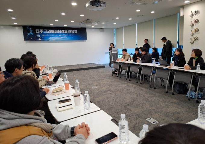 제주도는 제주창조경제혁신센터와 10일 오전 제주창조경제혁신센터 3층 회의실에서 ‘제주 크리에이터경제 활성화 현장 간담회’를 열었다.