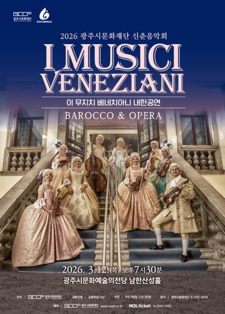 [참좋은뉴스= 기자] (재)광주시문화재단은 2026년 신춘음악회로 이탈리아 베네치아니를 기반으로 활동해온 바로크앙상블 〈이 무지치 베네치아니(I Musici Veneziani) 내한공연 – Barocco & Opera〉를 개최한다. 이번 공연은 베네치아 황금시대의 음악과 문화를 무대 위에 생생히 재현하며, 관객들에게 클래식을 통한 특별한 시간여행을 선사할 예정이다.