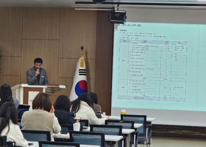 이번 연수는 △2026학년도 학습연구년 연수 운영 안내 △지정과제 담당자와의 협의 △강원교육의 이해 △슬기로운 학습연구년 생활 △학습연구년 연수 사례 발표 △연구과제 실행 방법론 강의로 진행됐다.