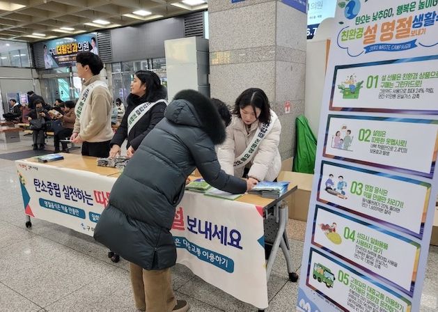이번 캠페인은 설 연휴를 맞아 기차역을 이용하는 시민들을 대상으로 일상에서 실천할 수 있는 탄소중립 생활수칙을 알리기 위해 마련됐다. 현장에서는 친환경 설 명절 보내기 실천방안과 함께 제7차 미세먼지 계절관리제, 탄소중립포인트제 가입 방법 등을 집중 안내했다.