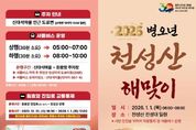[참좋은뉴스= 기자] 양산시는 올해로 3번째를 맞는 양산 천성산 해맞이 행사가 양산목련라이온스클럽(국제라이온스협회 355-D 양산지구 제3지역 소속)의 주최·주관으로 2026년 1월 1일 천성산 천성대 일원에서 개최된다고 밝혔다. 천성산은 양산 12경 중 하나로 한반도에서 가장 먼저 일출을 볼 수 있는 곳으로 잘 알려져 있으며, 새해 일출은 산 정산에서 내려다보는 동해바다 수평선에서 07시 26분쯤 둥근 해머리를 드러낼 것으로 예상된다. 2026년은 붉은 말의 강한 기운으로 시민들이 활력을 얻고 미뤄왔던 일을 실행하는 변화와 혁신의 해이다. ‘시 승격 30주년’이자 ‘양산 방문의 해’를 맞아 양산시도 새로운 도약을 시작하는 한 해여서 더욱 의미가 깊다. 이번 해맞이 행사는 해돋이 관람 전 무대 행사(06:30~일출 전)가 천성산 일출을 담은 영상과 레이져 쇼를 시작으로, 지난 번뇌를 벗고 새로운 시작을 알리는 승무 공연, 새해 대박을 기대하는 박 퍼포먼스, 땅의 기운으로 잡귀를 쫓고 시민의 건강과 행운을 기원하는 지신밟기 등이 마련돼 있다. 먹거리 부스(06:00~소진 시)도 운영해 시민들이 일출