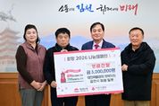 [참좋은뉴스= 기자] 대한곡물협회 김천시지부(지부장 윤진채)에서는 26일 김천시청을 방문해 ‘희망2026 나눔캠페인’ 성금 300만 원을 기부했다. 윤진채 지부장은 "회원들의 뜻을 모아 이웃사랑과 나눔을 실천하는 ‘희망2026 나눔캠페인’에 기부할 수 있어 매우 뜻깊게 생각한다. 앞으로도 지역사회 발전에 기여할 수 있도록 노력하겠다.”라고 전했다. 배낙호 김천시장은 “윤진채 지부장님과 회원님의 따뜻한 나눔 활동에 감사드린다. 지역사회의 연대와 나눔이 김천시가 지속적인 발전을 이어가는 원동력이 된다.”라고 말했다. 대한곡물협회는 양곡을 도정하는 사업자와 양곡을 보관하는 사업자들을 대표하는 비영리 사단법인으로, 김천시지부는 10명의 회원으로 운영되고 있다. [뉴스출처 : 경상북도 김천시]