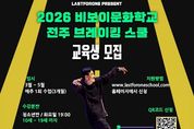 [참좋은뉴스= 기자] 전주시와 (사)라스트포원(대표 조성국)은 오는 3월부터 5월까지 운영되는 상반기 전주브레이킹스쿨 수강생을 선착순 모집한다고 20일 밝혔다. ‘전주브레이킹스쿨’은 전북을 대표하는 비보이 전문예술법인인 (사)라스트포원과 전주시가 브레이킹 저변 확대와 관련 분야 인재 양성을 위해 함께 운영하는 비보이문화학교로, 시민 누구나 브레이킹을 쉽고 안전하게 접할 수 있도록 생활체육·문화예술 교육 기회를 무료로 제공하는 것이 특징이다. 교육 내용은 △기초 리듬트레이닝 △브레이킹 기본 동작 △신체 능력 강화 △바닥동작(플로워 댄스) 등 입문자도 따라 하기 쉽도록 구성될 예정이다. 교육 기간은 3월부터 5월까지 3개월 과정으로, 매주 1회 오후 7시 운영한다. 수업은 청소년반(10세~19세, 화요일)과 성인취미반(20세~45세, 수요일)으로 나뉘어 진행되며, 반별 모집 인원은 20명 내외다. 교육은 전주역 앞 첫마중길에 위치한 전주브레이킹스쿨 비보이연습공간(백제대로825 지하)에서 이뤄진다. 교육 신청은 라스트포원스쿨 누리집 또는 포스터 QR코드를 통해 가능하며, 모집 인원 충원 시