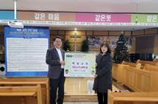 [참좋은뉴스= 기자] 의정부시 자금동주민센터는 12월 24일 계성교회가 어려운 이웃을 위한 성금 67만6천 원을 기탁하며 ‘100일간 사랑릴레이 배턴 잇기’에 동참했다고 밝혔다. 계성교회는 매년 어려운 이웃들을 위한 기부 활동에 앞장서며 이웃사랑을 실천하고 있다. 이번에 전달된 성금은 경기사회복지공동모금회를 통해 관내 도움이 필요한 이웃들을 위해 쓰일 예정이다. 신진선 담임목사는 “어려운 시기에 성도들이 한마음으로 뜻을 모아 십시일반 정성을 모았다”며 “앞으로도 어려운 이웃들과 함께하며 나눔과 봉사를 실천하겠다”고 전했다. 유진환 동장은 “해마다 따뜻한 나눔을 실천해 주시는 계성교회에 진심으로 감사드린다”며 “기탁해 주신 성금은 관내 도움이 필요한 이웃들에게 실질적인 도움이 될 수 있도록 최선을 다하겠다”고 말했다. [뉴스출처 : 경기도 의정부시]